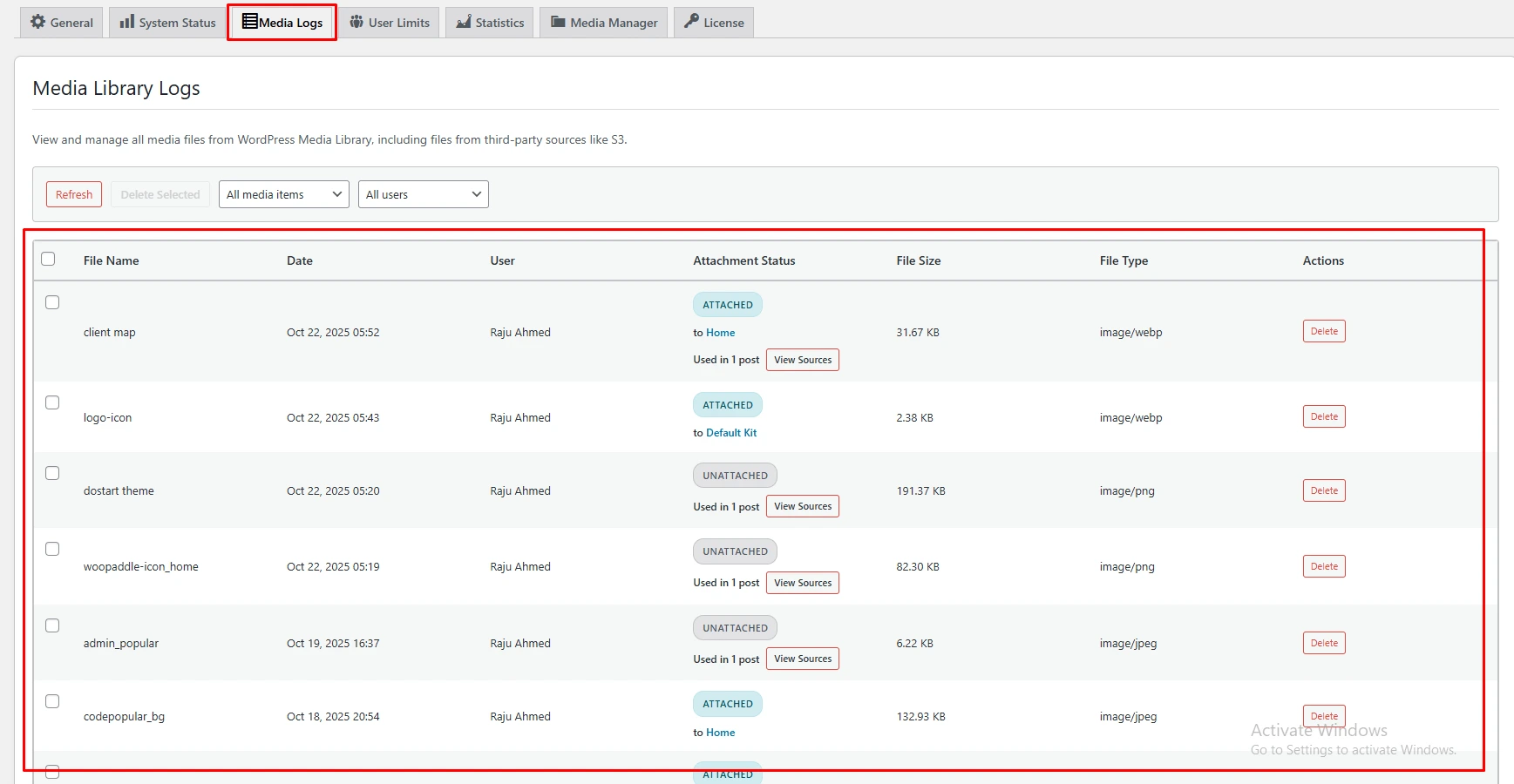 The Attachment Logs feature lets you track every file uploaded to your website with complete transparency. It records essential details such as the file name, upload date, file size, uploader’s username, and user role, giving you a clear overview of all file activities. This powerful tool helps website owners monitor uploads, maintain accountability, enhance security, and ensure that every action within the media library is tracked and organized.