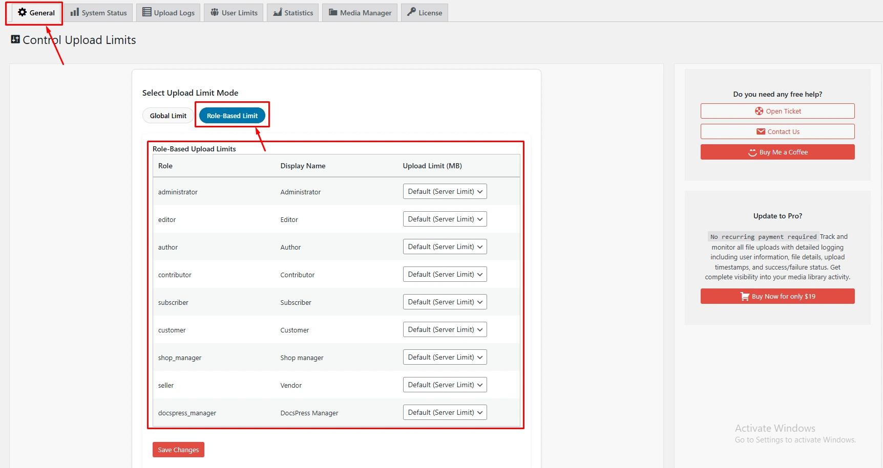 Yes, Its allow you to set upload limit by role. So each individual WordPress role will have separate upload limit. For Ex: Administrator can upload max 10 GB, Editor can upload max 2MB, Author can upload max 5MB.